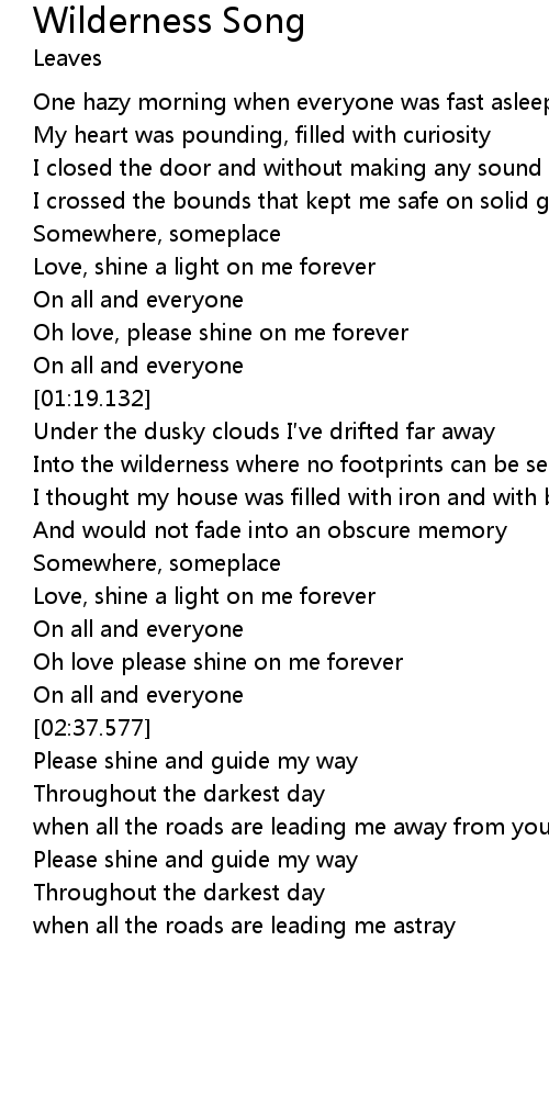 | [01:43.202] | Into the wilderness where no footprints can be seen |