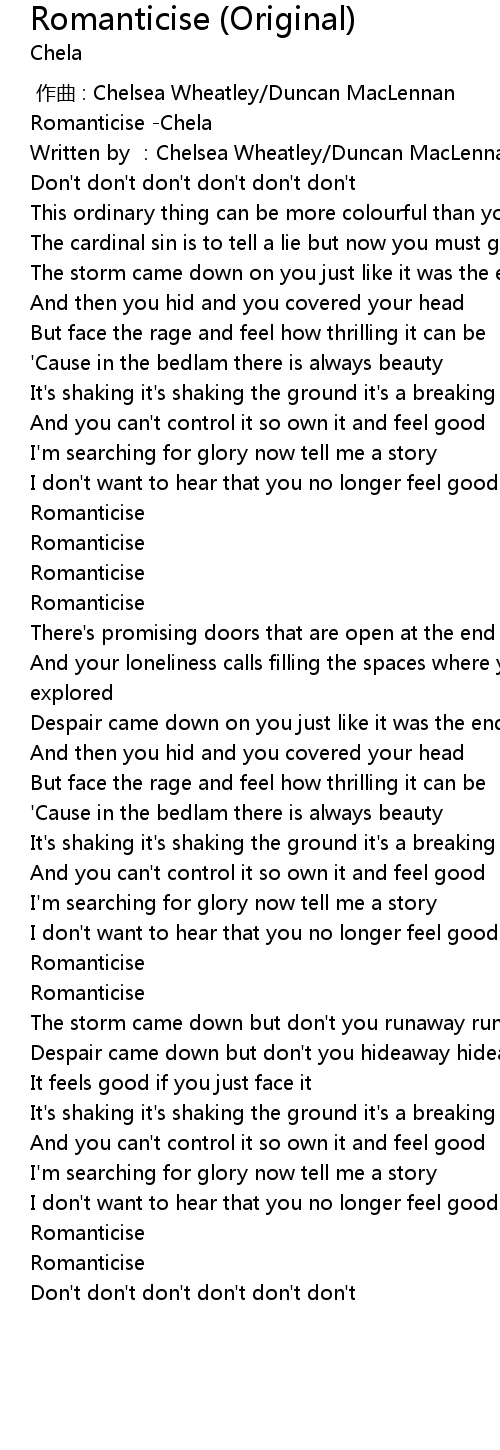 | [00:00.000] | zuo qu : Chelsea Wheatley Duncan MacLennan |