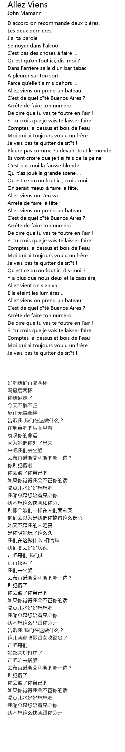 | Song | Allez Viens |