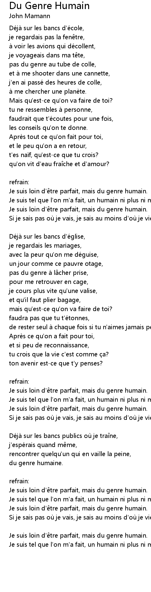 | Song | Du Genre Humain |