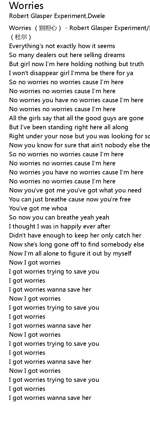 | [00:00.811] | Worries bié dān xīn Robert Glasper Experiment Dwele dù ěr |