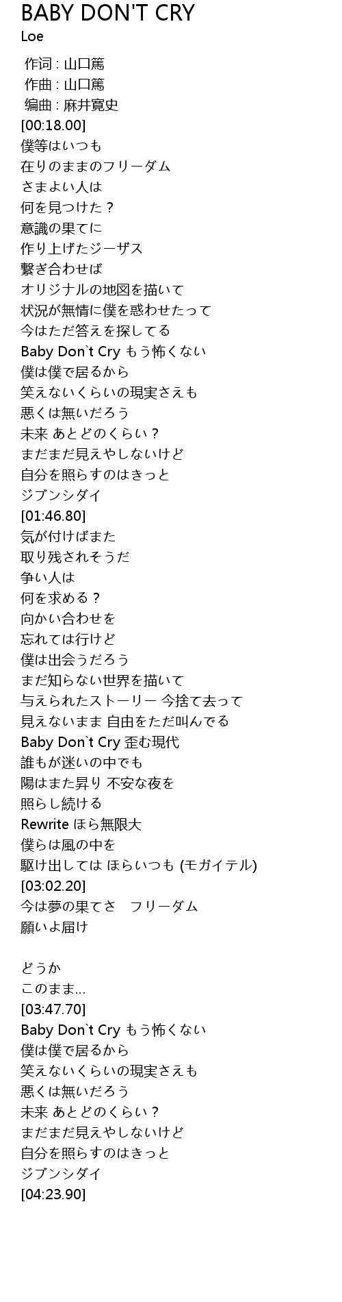 | [01:16.85] | Baby Don`t Cry もう怖くない |