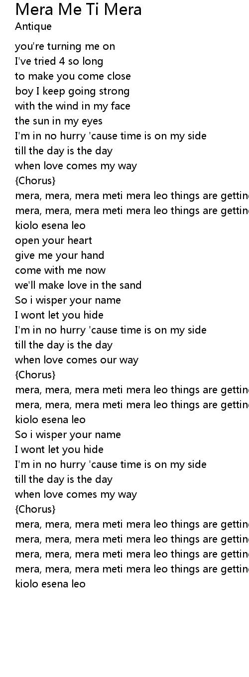 | mera, mera, mera meti mera leo things are getting better | |