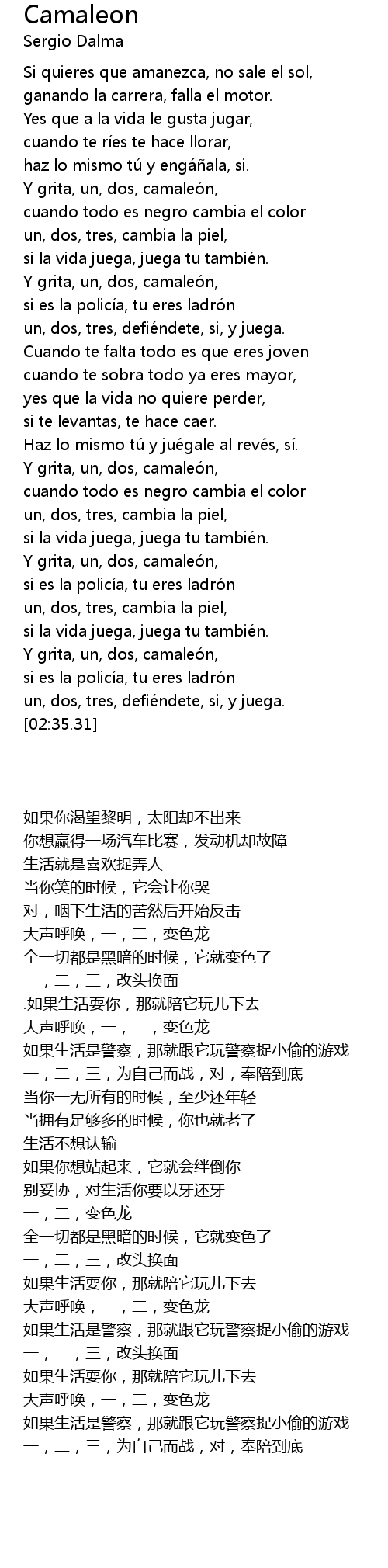 | [02:04.19] | Y grita, un, dos, camaleón, |
