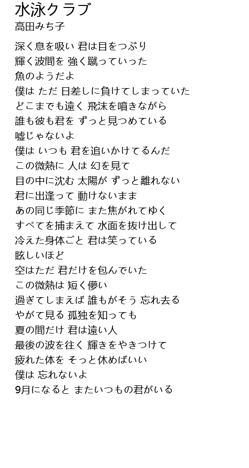 | [00:17.02] | 輝く波間を 強く蹴っていった |