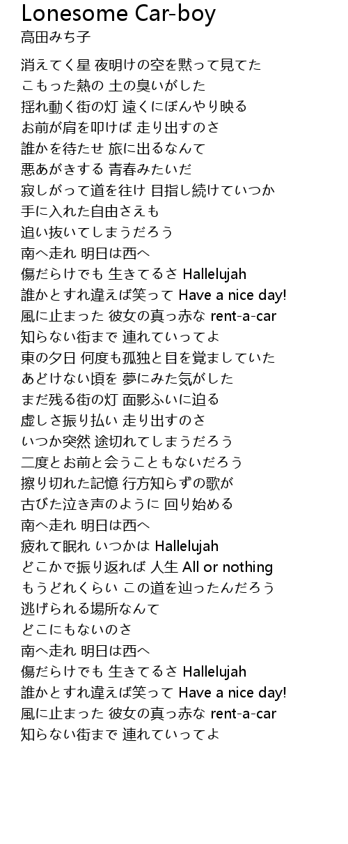 | [01:44.75] | 風に止まった 彼女の真っ赤な rent-a-car |