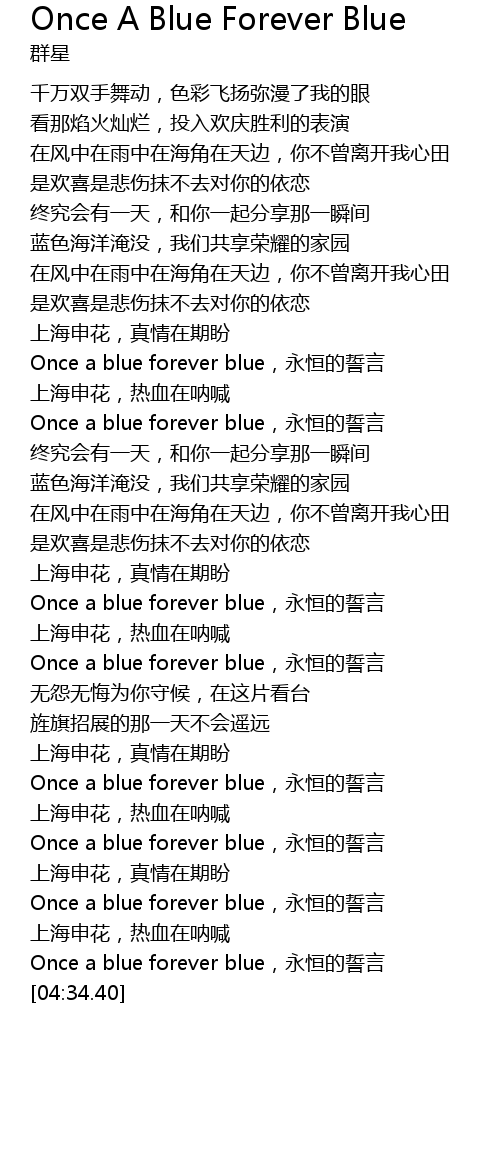 | [04:12.57] | Once a blue forever blue, yong heng de shi yan |