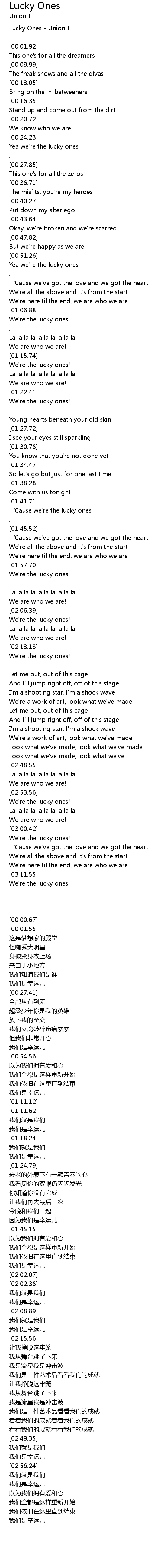 | [00:00.67] | Lucky Ones - Union J |