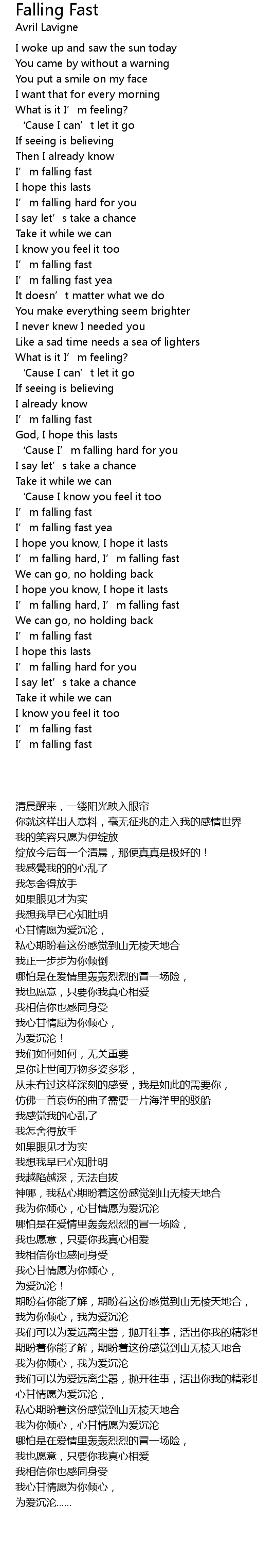 | [00:33.40] | I' m falling fast |