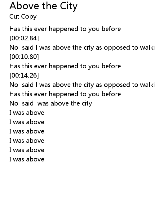 | [00:03.88] | No said I was above the city as opposed to walking |