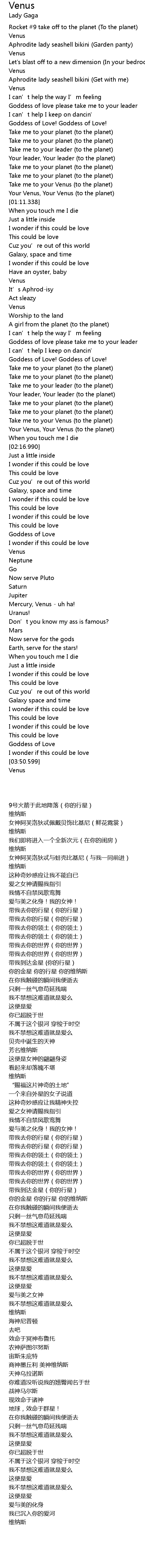 | [01:09.338] | Your Venus, Your Venus (to the planet) |