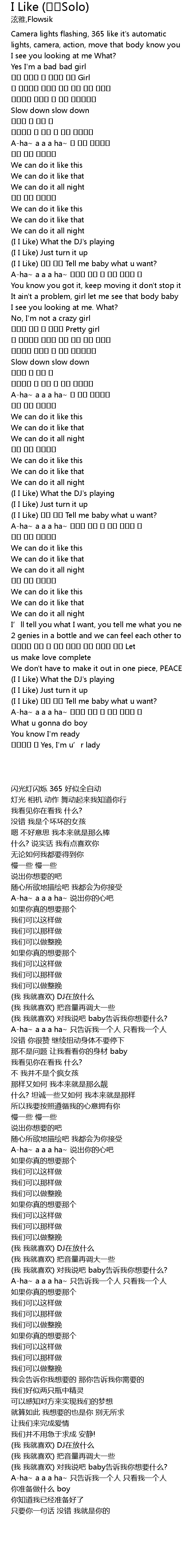 | [02:16.110] | (I I Like) 내게 말해 Tell me baby what u want? |