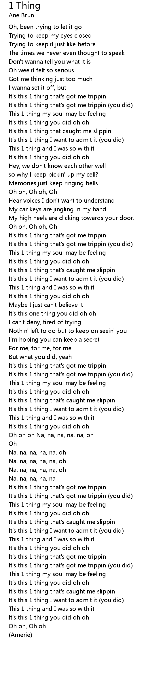 | It's this 1 thing that's got me trippin (you did) | |