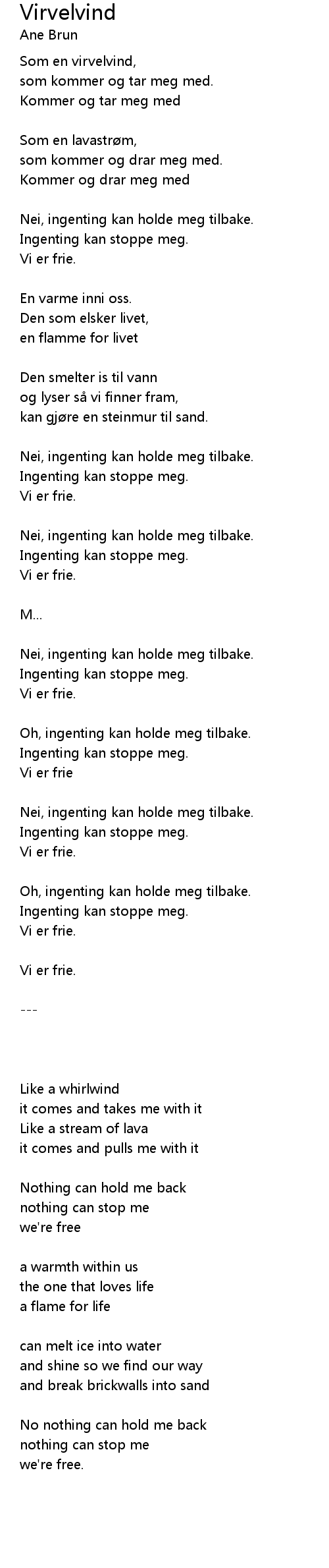 | Oh, ingenting kan holde meg tilbake. | |