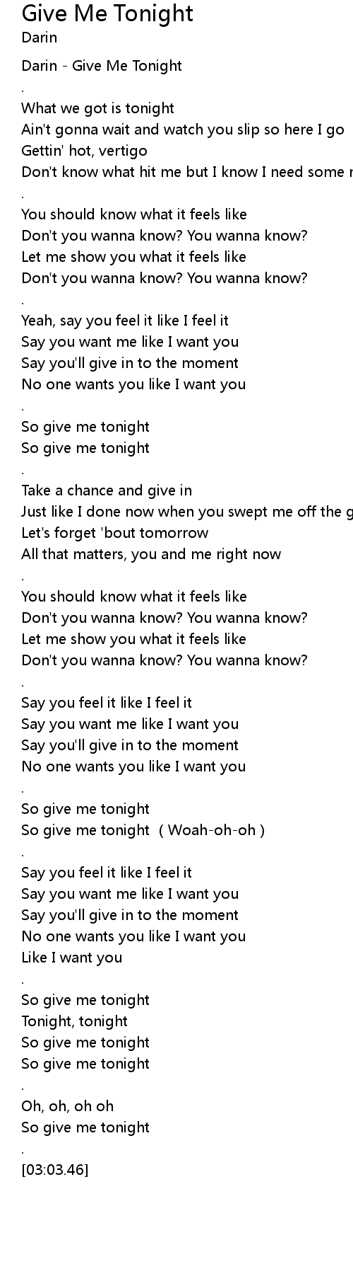 | [00:00.09] | Darin Give Me Tonight |