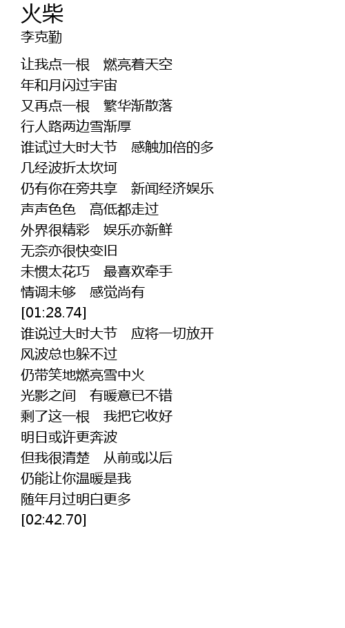 | [01:58.42] | 仍带笑地燃亮雪中火 |