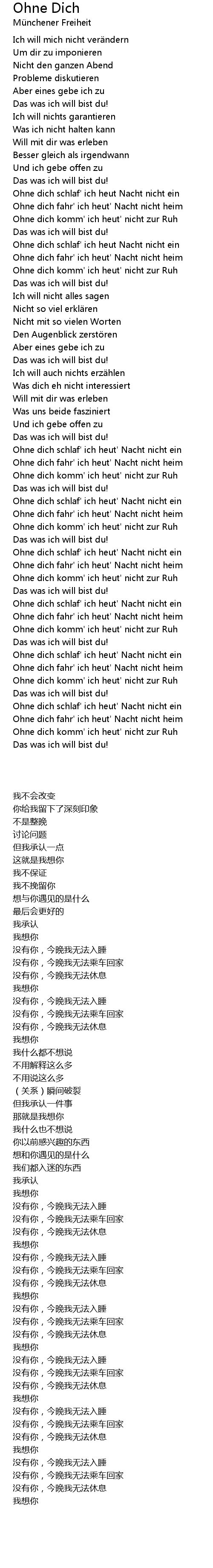 | [03:36.43] | Ohne dich fahr' ich heut' Nacht nicht heim |