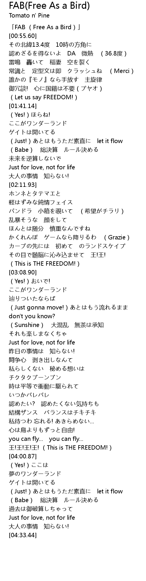 | [00:01.60] | 「FAB (Free As a Bird)」 |