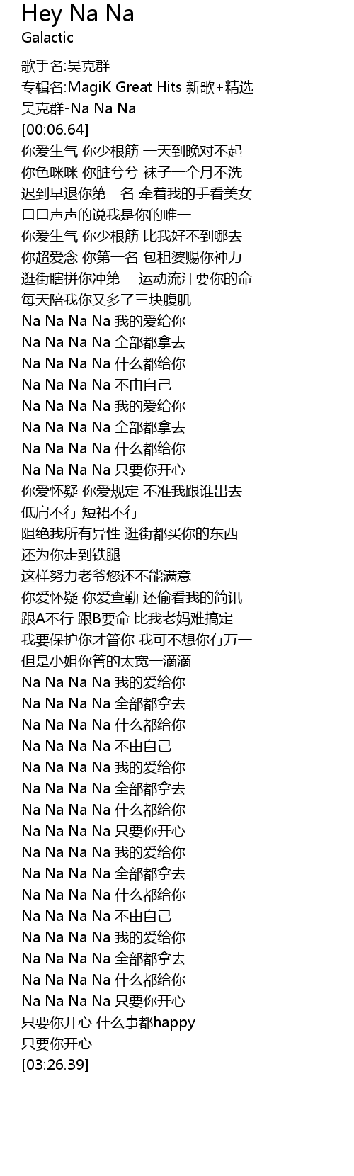 | [03:06.67] | Na Na Na Na 只要你开心 |