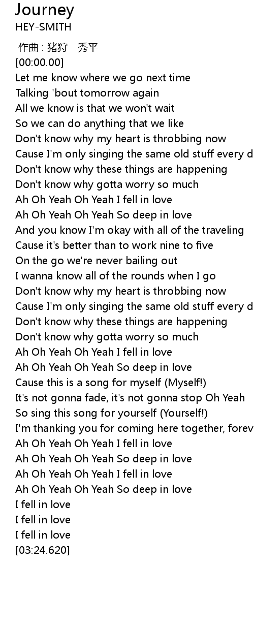 | [02:52.069] | Ah Oh Yeah Oh Yeah I fell in love |