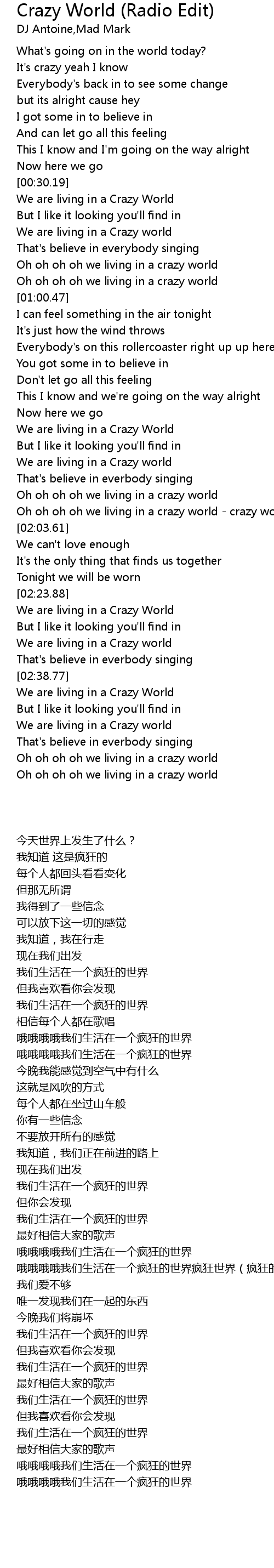 Oh oh oh oh we living in a crazy world - crazy world (crazy world) |