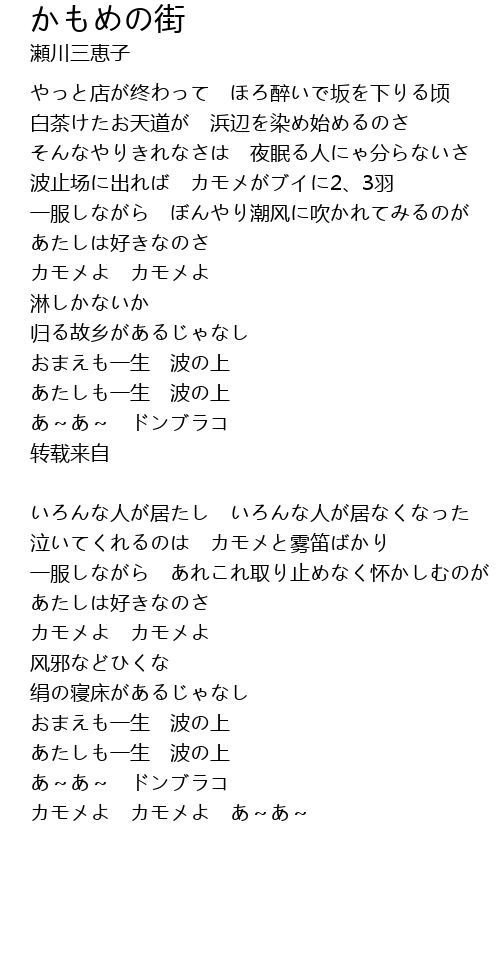 | 泣いてくれるのは カモメと雾笛ばかり | |