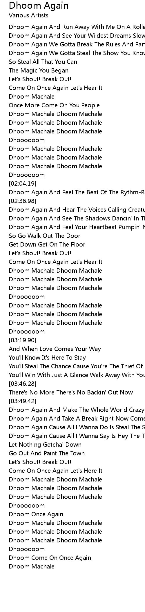 Dhoom Again And Feel Your Heartbeat Pumpin' Now The Time Is Right |