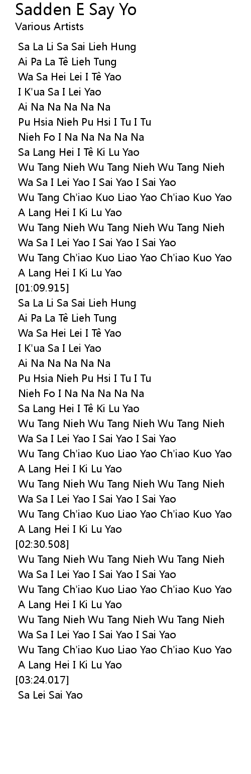 | [01:43.880] | Wa Sa Hei Lei I Tê Yao |