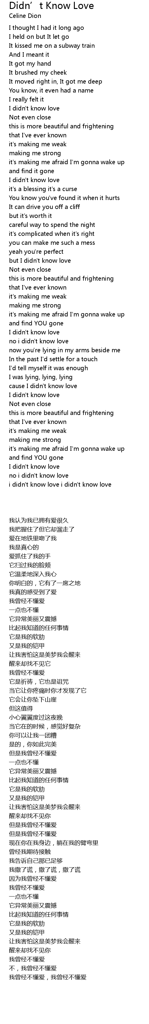 but I didn't know love |
