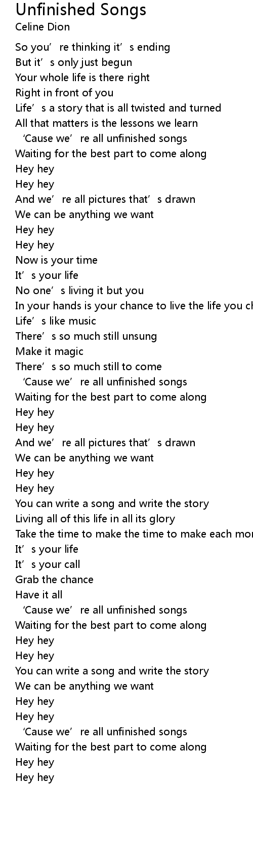 | [02:46.769] | ' Cause we' re all unfinished songs |