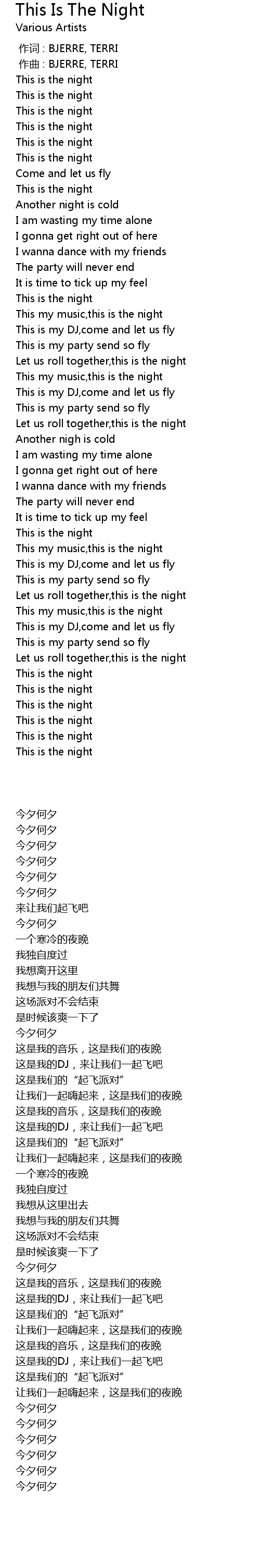 | [01:44.000] | This is my DJ,come and let us fly |