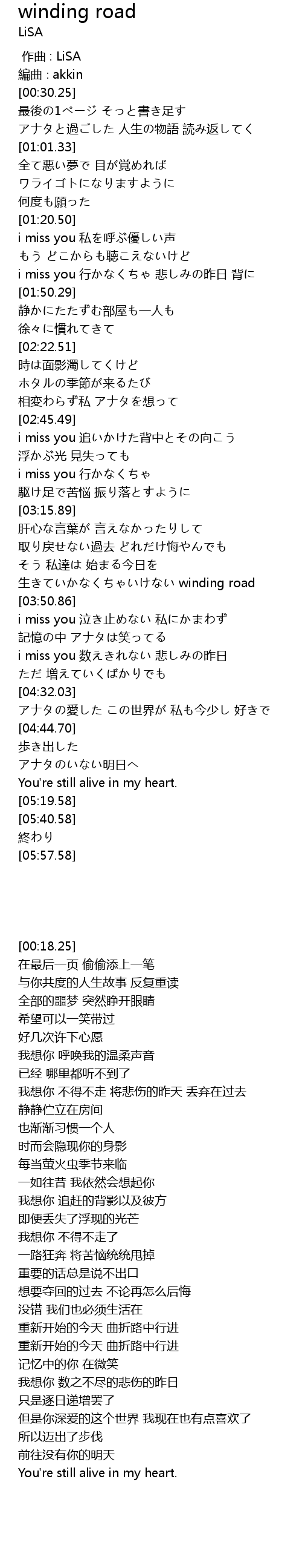 | [03:38.02] | 生きていかなくちゃいけない winding road |