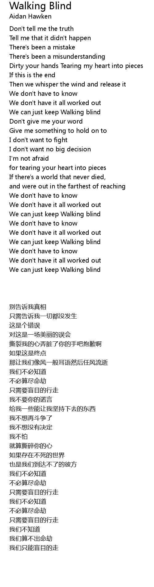 We can just keep Walking blind |