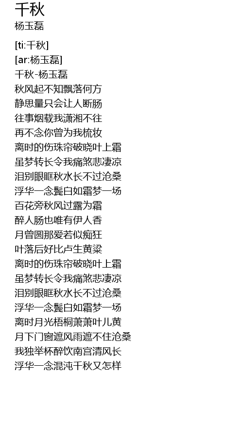 | [00:02.622] | qiān qiū yáng yù lěi |