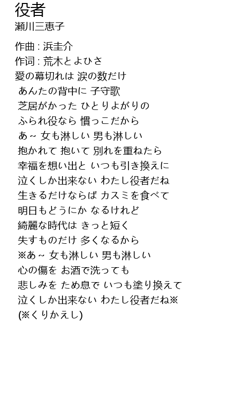 | 泣くしか出来ない わたし役者だね | |