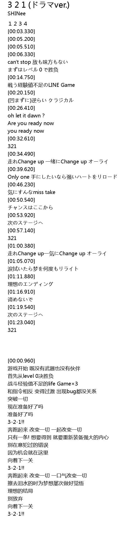 | [00:35.600] | 走れChange up 一绪にChange up オーライ |