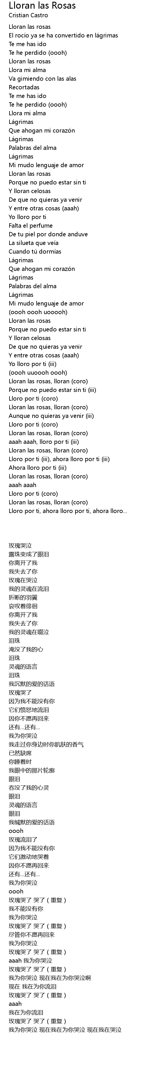 | [03:53.443] | Lloran las rosas, lloran (coro) |
