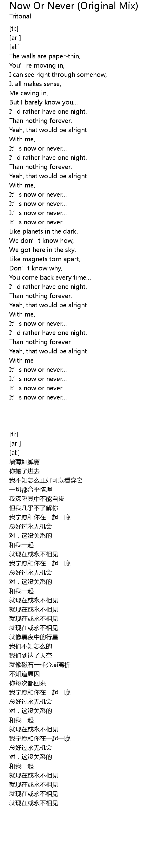 | [01:40.15] | It' s now or never |
