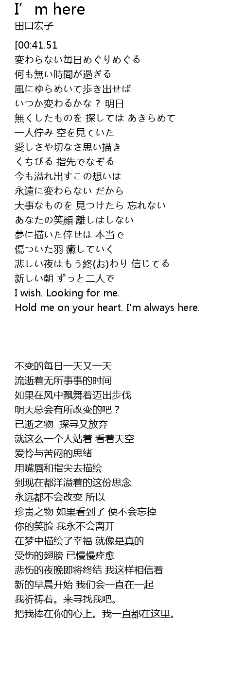 | [03:46.88] | Hold me on your heart. I'm always here. |