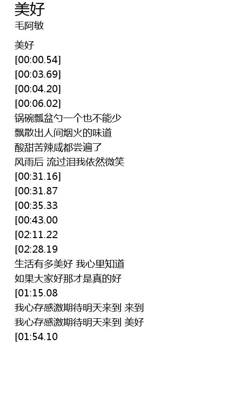 | [01:43.22] | 我心存感激期待明天来到 美好 |