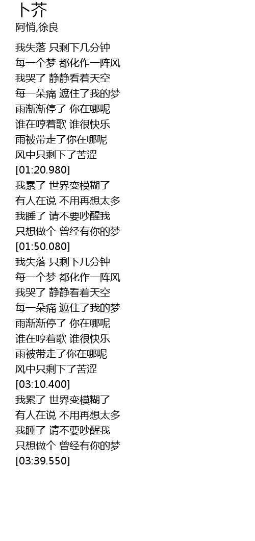 | [01:43.050] | 只想做个 曾经有你的梦 |