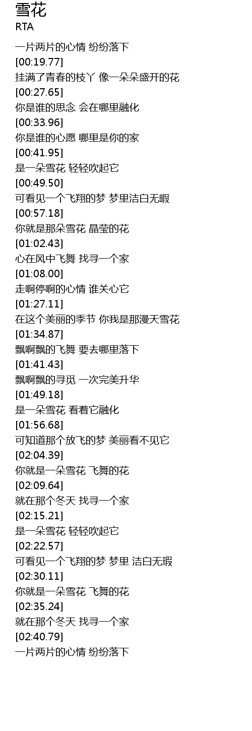 | [02:31.36] | 你就是一朵雪花 飞舞的花 |
