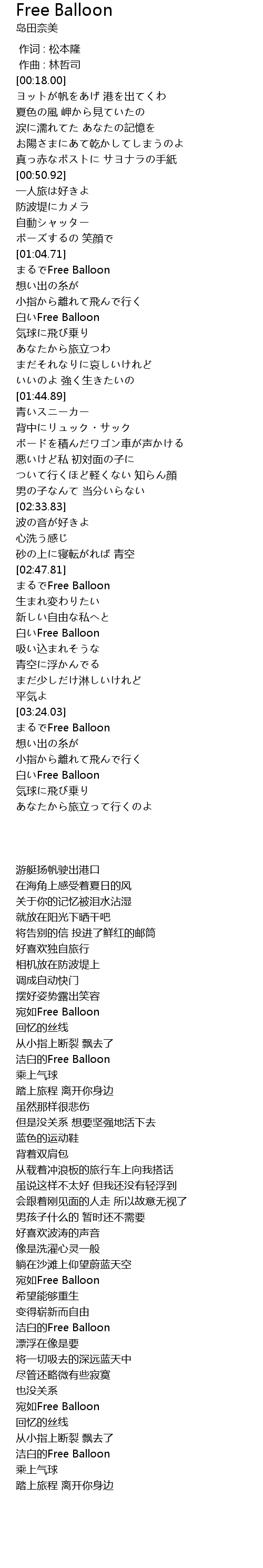 | [03:02.85] | bai Free Balloon |