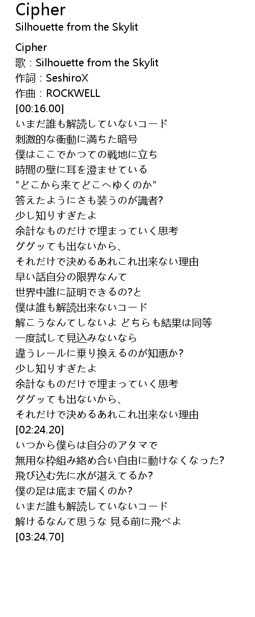 | [00:10.00] | 歌:Silhouette from the Skylit |