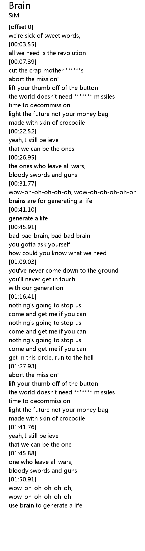 | [01:04.54] | bad bad brain, bad bad brain |