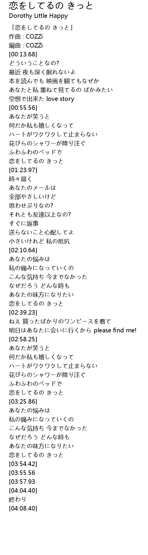 | [00:00.68] | 「恋をしてるの きっと」 |