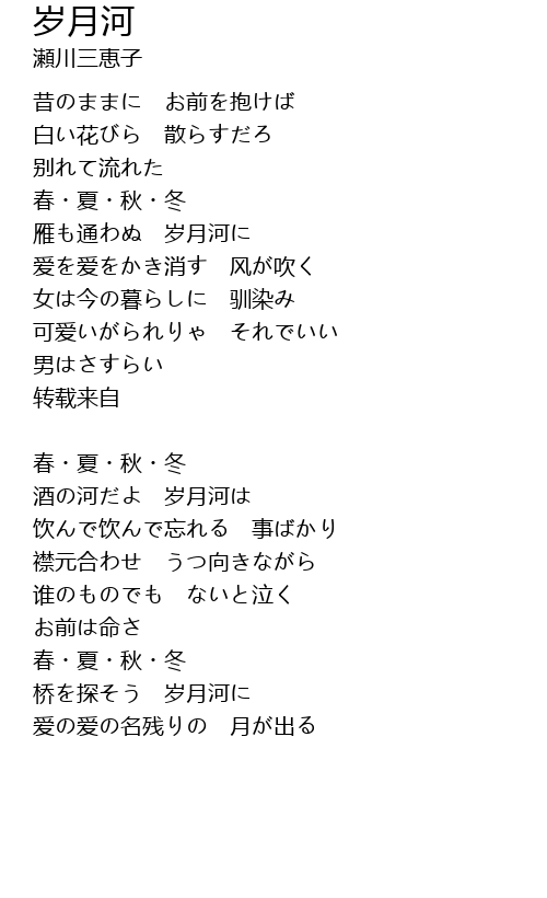 酒の河だよ 岁月河は |