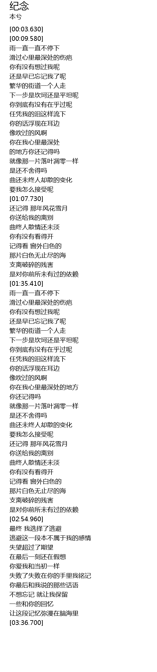 | [03:31.450] | 一些和你的回忆 |