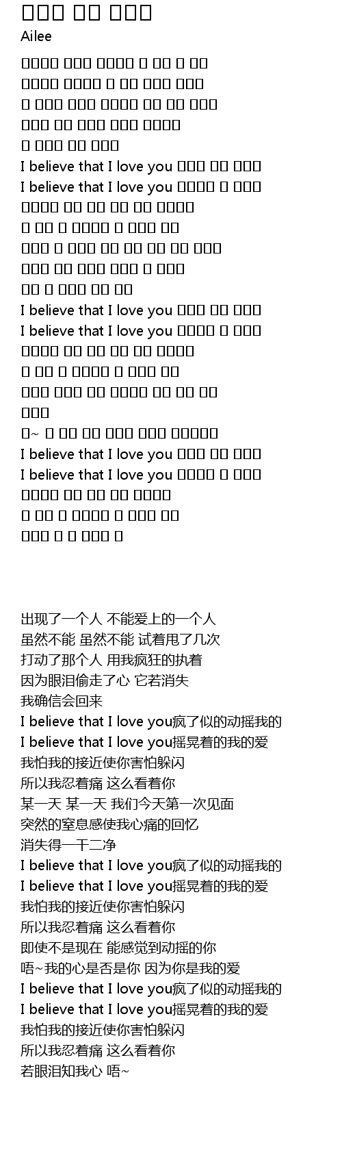 | [03:17.680] | I believe that I love you 비틀대는 내 사랑이 |
