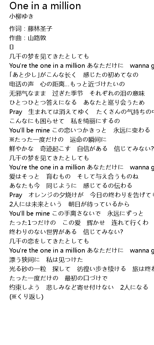 | You're the one in a million あなただけに wanna give you my heart※ | |